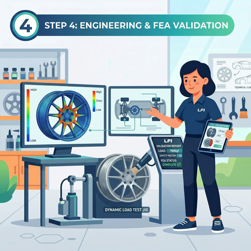 Generic wheels fit "most" cars; ours are structurally perfected for yours. Using advanced FEA calibrated to your car’s exact weight and power, we safely shave off every unnecessary gram. This drastically reduces unsprung mass for sharper handling and uncompromising performance.